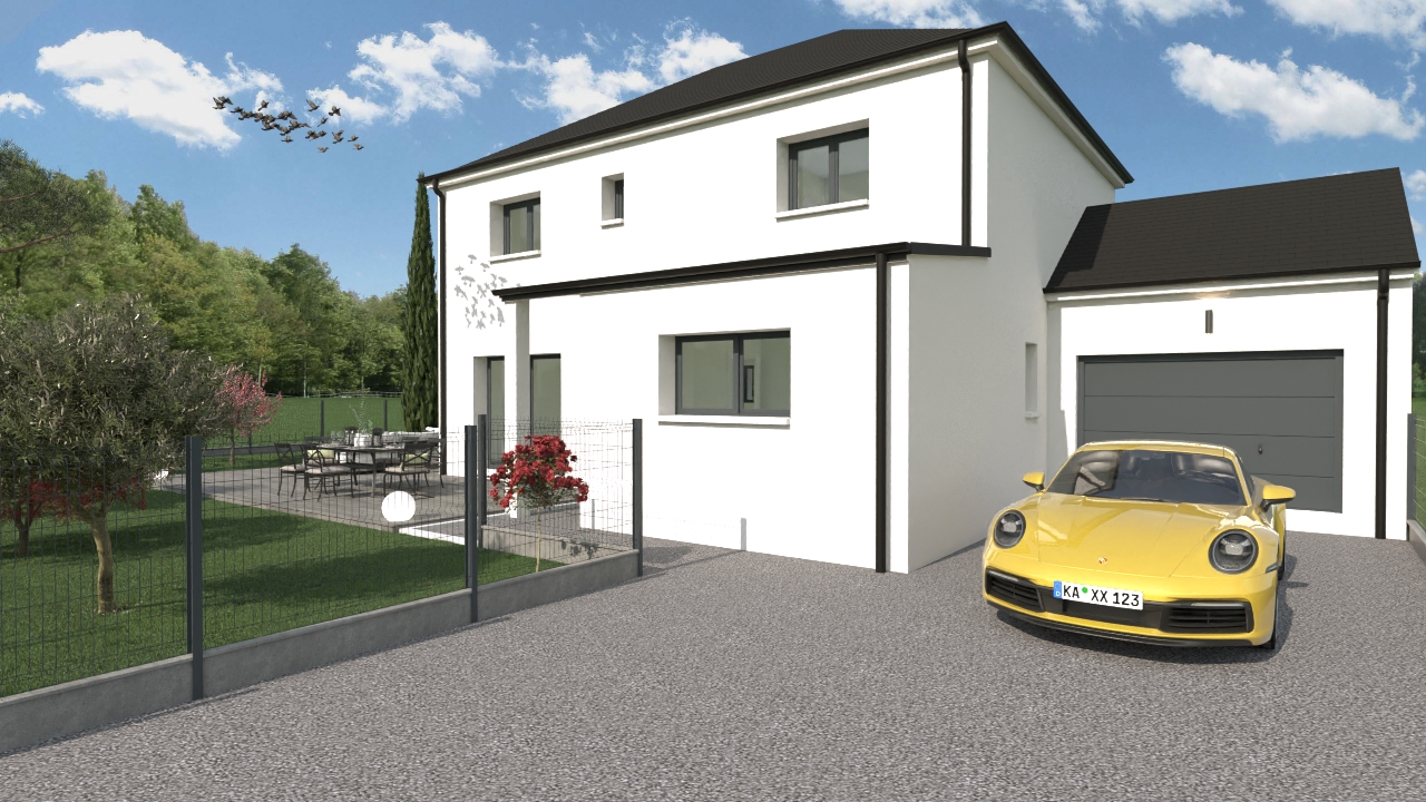 Maison prête à décorer et paysager.