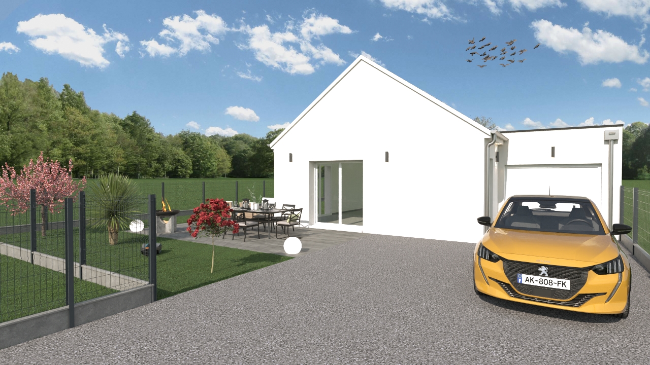 Maison avec une grande pièce de vie lumineuse de plus de 44 m² avec 2 grande baie coulissante, cellier, salle d’eau avec douche italienne.